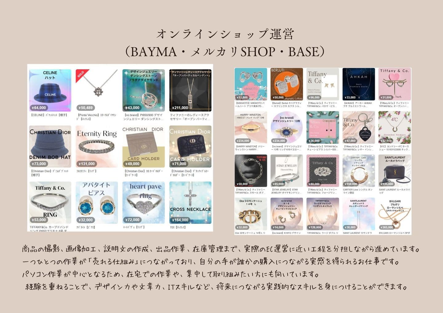 ハイブランドリユース品や海外ブランド品を扱い、撮影・画像加工・文章作成・発信・販売まで、